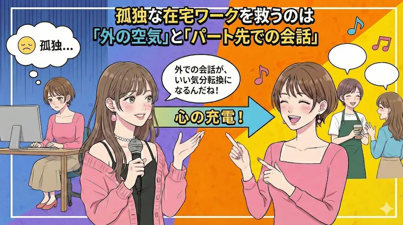 そうなんです。私、ずっと家にこもっていると気持ちが沈んじゃうタイプで。だから、パート先で「生身の人間」と挨拶したり、接客をしたりして外の空気を吸う時間が、実はメンタルを整えるリフレッシュになってるんです。