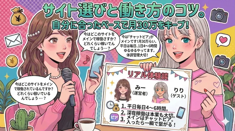「チャットレディって本当に稼げるの?」「今の働き方を変えたいけれど、一歩踏み出せない…」そんな悩みを抱えていませんか?今回は、本業と両立しながらチャットレディとして活躍中のりりさんをお迎えし、サイト運営者のみーがリアルな体験談を深掘りしました!