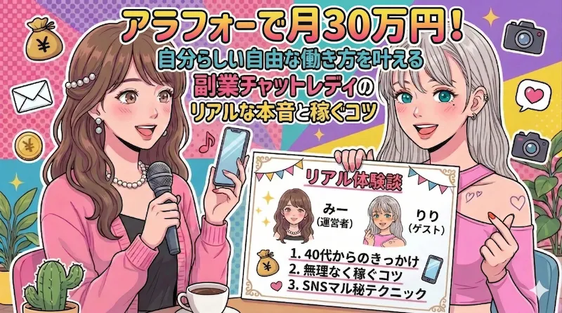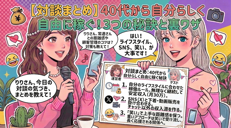 40代からチャトレを始めたきっかけや、無理なく稼ぐコツ、さらにはSNSを使ったマル秘テクニックまで。