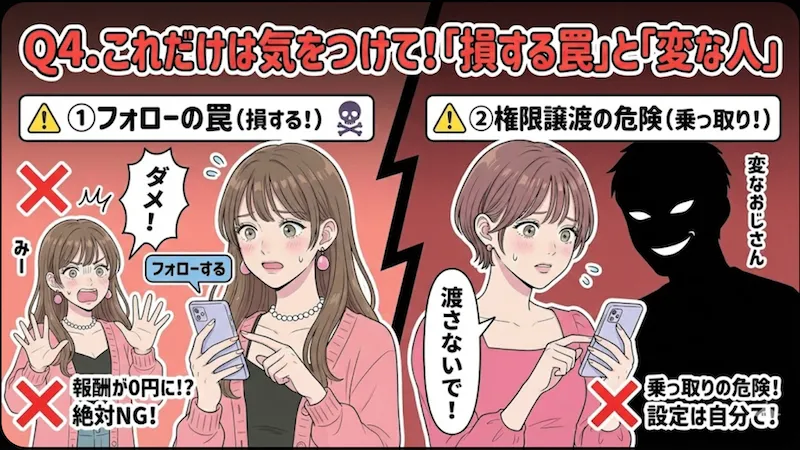 あと、これから始めるなら絶対覚えといてほしいことが2つある! まず1つ目、「男性をむやみにフォローしちゃダメ」。
