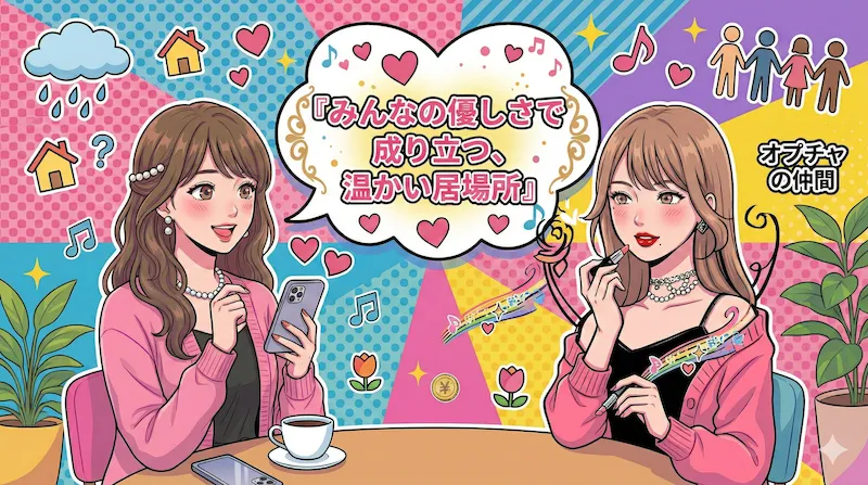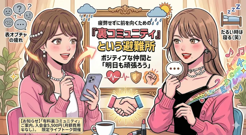 - ネガティブから距離を置ける:不特定多数が集まる表のオプチャに疲れた時、「裏コミュニティ」はポジティブで前向きな人だけが集まる安全な避難所になります。