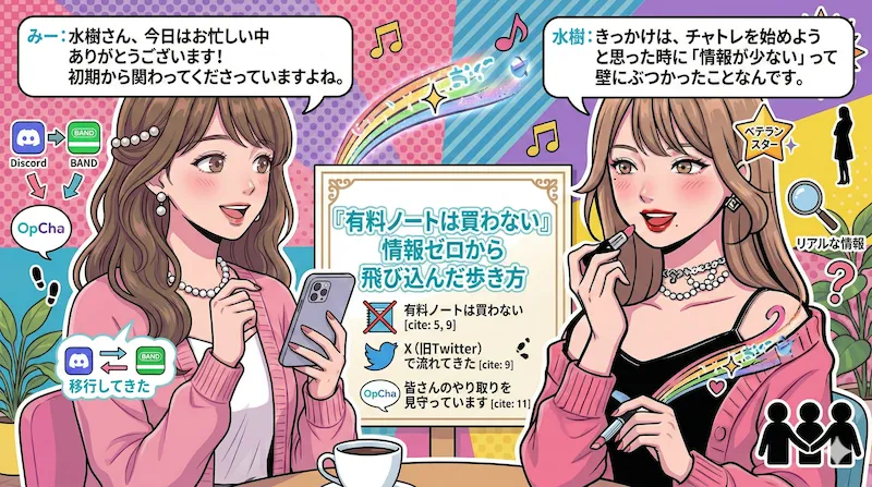 今回は、業界最大級のオプチャ管理人・みーと、発足当初からコミュニティを優しく、時に力強く見守り続けるベテランメンバー水樹さんのスペシャル対談をお届けします。